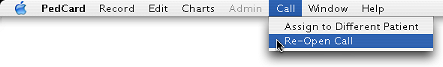 If you need to add to a call after it has been closed, you can do so by re-opening the call. First double-click the call in the list to display its details. Whenever a call detail window is the frontmost window, the "Call" menu is available.